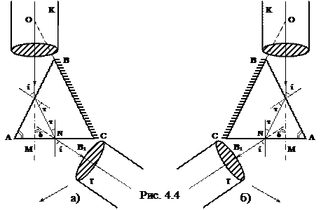 а) Определение преломляющего угла призмы A