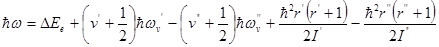 Опыт показывает, что энергетические расстояния между вращательными уровнями меньше, чем между колебательными, которые, в свою очередь, значительно меньше, чем расстояния между электронными уровнями При сообщении молекуле достаточной энергии она переходит в возбужденное состояние и затем, совершая разрешенный правилами отбора переход в одно из более низких энергетических состояний, излучает фотон: