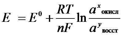 Величина окислительно-восстановительного потенциала (ОВ-потенциала) зависит от химической природы материала электрода, температуры, концентрации и природы потенциалопределяющих частиц в растворе. Эта зависимость выражается уравнением Нернста: