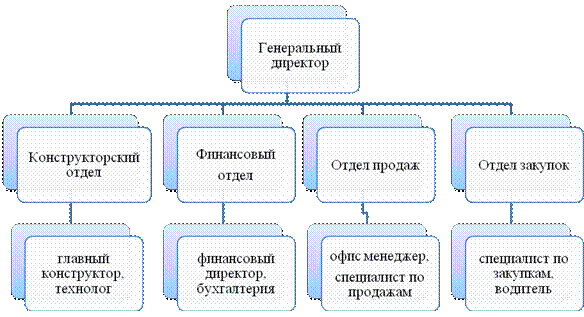 Рис. 1. Организационная структура ООО «Нефтегазрезервуар» Общая численность персонала по отделам составляет 10 человек. Генеральный директор, являясь единоличным исполнительным органом Общества, без доверенности действует от имени Общества, в том числе: · распоряжается имуществом Общества для обеспечения его текущей деятельности в пределах, установленных Уставом и внутренними документами Общества; · представляет интересы Общества как в Российской Федерации, так и за её пределами; · утверждает штатное расписание, заключает трудовые договора с работниками Общества, применяет к этим работникам меры поощрения и налагает на них взыскания; · совершает сделки от имени Общества, за исключением случаев, предусмотренных Федеральным законом и Уставом; · выдает доверенности от имени Общества; · открывает в банках счета Общества; · организует ведение бухгалтерского учета и отчетности Общества; · издает приказы и дает указания, обязательные для исполнения всеми работниками Общества; · исполняет другие функции, необходимые для достижения целей деятельности Общества и обеспечения его нормальной работы, в соответствии с действующим законодательством Российской Федерации, его персональным договором, заключенным с Обществом, Уставом, за исключением функций, закрепленных за органами управления Общества. Главный конструктор разрабатывает эскизные, технические и рабочие проекты особо сложных, сложных и средней сложности изделий, используя средства автоматизации проектирования, передовой опыт разработки конкурентоспособных изделий, обеспечивает при этом соответствие разрабатываемых конструкций техническим заданиям, стандартам, нормам охраны труда, требованиям наиболее экономичной технологии производства, а также использование в них стандартизованных и унифицированных деталей и сборочных единиц. Проводит патентные исследования и определяет показатели технического уровня проектируемых изделий. Составляет кинематические схемы, общие компоновки и теоретические увязки отдельных элементов конструкций на основании принципиальных схем и эскизных проектов, проверяет рабочие проекты и осуществляет контроль чертежей по специальности или профилю работы, снимает эскизы сложных деталей с натуры и выполняет сложные деталировки. Проводит технические расчеты по проектам, технико-экономический и функционально-стоимостной анализ эффективности проектируемых конструкций, а также расчет рисков при разработке новых изделий, составляет инструкции по эксплуатации конструкций, пояснительные записки к ним, карты технического уровня, паспорта (в том числе патентные и лицензионные), программы испытаний, технические условия, извещения об изменениях в ранее разработанных чертежах и другую техническую документацию. Изучает и анализирует поступающую от других предприятий конструкторскую документацию в целях ее использования при проектировании и конструировании. Согласовывает разрабатываемые проекты с другими подразделениями предприятия, представителями заказчиков и органов надзора, экономически обосновывает разрабатываемые конструкции. Участвует в монтаже, наладке, испытаниях и сдаче в эксплуатацию опытных образцов изделий, узлов, систем и деталей новых и модернизированных конструкций выпускаемой предприятием продукции, 