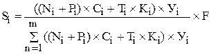 где: Si - размер субсидии, предоставляемой бюджету i-го субъекта Российской Федерации; Ni - стоимость оборудования, инвентаря и экипировки, приобретаемых для оснащения учреждений спортивной направленности; Pi - стоимость компьютерной техники и оргтехники, приобретаемых для оснащения учреждений спортивной направленности; Ci - количество спортивных школ (отделений) учреждений спортивной направленности, расположенных на территории субъекта Российской Федерации, оснащаемых в текущем году; Ti - стоимость одной единицы транспортного средства, приобретаемой для оснащения учреждений спортивной направленности; Ki - количество транспортных средств, приобретаемых для оснащения учреждений спортивной направленности; m - количество субъектов Российской Федерации - получателей субсидии; F - общий размер субсидии, предусмотренной в федеральном бюджете на поддержку учреждений спортивной направленности в субъектах Российской Федерации. 7. Распределение субсидий между бюджетами субъектов Российской Федерации утверждается Министерством спорта, туризма и молодежной политики Российской Федерации. 8. В случае если размер средств, предусмотренных в бюджете субъекта Российской Федерации на финансирование мероприятий, указанных в пункте 1 настоящих Правил, не позволяет обеспечить установленный для субъекта Российской Федерации уровень софинансирования за счет средств федерального бюджета, размер субсидии подлежит сокращению с целью обеспечения соответствующего уровня софинансирования, а высвобождающиеся средства перераспределяются Министерством спорта, туризма и молодежной политики Российской Федерации между бюджетами других субъектов Российской Федерации, имеющих право на получение субсидий в соответствии с настоящими Правилами. 9. Операции по кассовым расходам бюджетов субъектов Российской Федерации (местных бюджетов), источником финансового обеспечения которых являются субсидии, учитываются в соответствии с требованиями, установленными федеральным законом о федеральном бюджете на текущий финансовый год и плановый период. 10. Эффективность использования субъектом Российской Федерации субсидии оценивается Министерством спорта, туризма и молодежной политики Российской Федерации на основе целевого показателя. 11. Уполномоченные органы исполнительной власти субъектов Российской Федерации ежеквартально, до 15-го числа месяца, следующего за отчетным периодом, представляют в Министерство спорта, туризма и молодежной политики Российской Федерации отчет об осуществлении расходов бюджетов субъектов Российской Федерации (местных бюджетов), источником финансового обеспечения которых являются субсидии, по форме, утвержденной указанным Министерством. 12. В случае если установлено, что в отчетном финансовом году субъектом Российской Федерации не достигнуто значение целевого показателя и соответствующее отклонение составляет более 50 процентов среднероссийского уровня, Министерство спорта, туризма и молодежной политики Российской Федерации принимает решение о сокращении размера предоставляемой субсидии в году, следующем за отчетным финансовым годом, из расчета 1 процент размера субсидии за каждый процентный пункт снижения значения целевого показателя. Высвобождающиеся средства перераспределяются между другими субъек