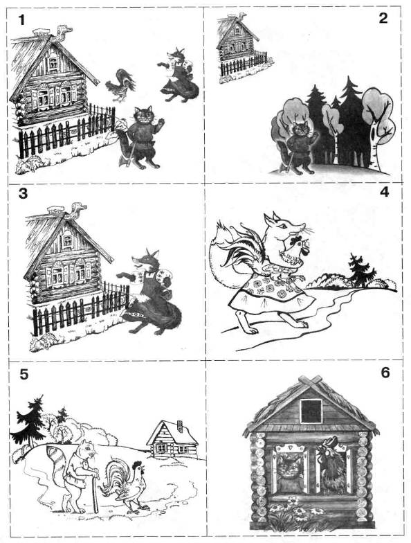 В лесу в маленькой избушке жили-были кот да петух. Кот рано утром вставал, на охоту ходил, а Петя-петушок оставался дом стеречь. Уйдет кот на охоту, а петушок все в избушке приберет, пол чисто подметет, вскочит на жердочку, песни поет и кота ждет. Бежала как-то лиса, услыхала, как петух песни поет, захотелось ей петушиного мяса попробовать. Вот она села под окошко да и запела: