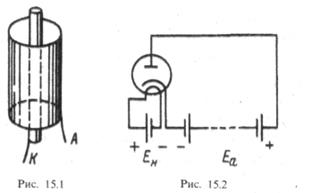 Рис. 10.1. Циліндрична конструкція електродів діода Рис. 10.2. Електричне коло діода з катодом непрямого розжарення