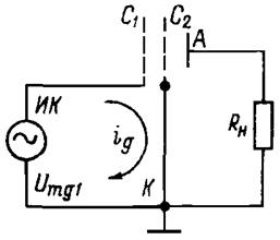 Оскільки керуюча сітка негуста, а напруга Ug 2 досить велика, то напруга, що зачиняє велика, тобто анодно-сіткові характеристики виходять "лівими". Якщо D 1 = 0,10, D 2 = 0,02 і Розглянемо за спрощеною еквівалентною схемою (рис.14.1) зменшення прохідної ємності C(a-g)1 за рахунок екрануючої сітки.