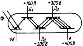Рис.16.6. Принцип побудови фотоелектронного помножувача