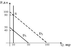 1. Если спрос на автомобили является эластичным, то спрос на металл, необходимый для их производства, является … (выберите один вариант ответа) а) неэластичным б) эластичным в) нулевым г) бесконечным 2. Для производства сельскохозяйственной продукции был сдан в аренду земельный участок за ежегодную плату, равную 900 ден. ед. На данном участке имелась мельница, годовая величина амортизации которой равна 80 ден. ед. Годовая величина земельной ренты равна 800 ден. ед. Годовая норма ссудного процента равна 5%. Определите рыночную цену мельницы. 3. Если предложение земли S=10 акров, спрос увеличится с уровня D1=50-р до D2=100-р, а ставка банковского процента уменьшится с 10% до 5%, то рента, получаемая с одного акра земли …