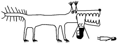 Рис.2. Условные обозначения на рисунках-схемах. Заглянем на несколько сотен тысяч лет назад. Нижний палеолит. В те далекие времена, когда только начинал формироваться наш биологический вид, и в мозгах наших далеких предков, гоминид, «прошивались» инстинктивные программы поведения. Специфическими особенностями всех видов людей являются прямохождение и большой размер головного мозга. Другими словами, так как передние конечности предназначены для специальных целей – использования и производства орудий труда и оружия, то человек уже не мог их полноценно использовать для передвижения. Поэтому он уступал в скорости и ловкости остальным животным. Чтобы скомпенсировать этот недостаток и выжить, человек должен был иметь некое преимущество в чем-то ином. Таким преимуществом являлся мощный человеческий мозг. Он позволял человеку иметь гораздо больше вариантов поведения. Например, использовать большее количество охотничьих приемов, запоминать их и обучать им соплеменников, быстро усваивать, использовать и передавать информацию. А также изготавливать и применять простейшие орудия труда и оружие. Однако за все нужно платить. И большой размер головного мозга повлек за собой чрезвычайно продолжительный срок внутриутробного, а также последующего развития и обучения потомства. Кроме того, трудность прохождения родовых путей вместилищем мозга, крупной головой ребенка, обусловила необходимость уширения таза человеческой самки, что сделало ее еще менее ловкой и быстрой. Удлинение же срока развития и обучения потомства сделал самку в очень большой степени и на очень большой срок привязанной к детенышам. Следовательно - в значительной степени беспомощной и неспособной на самостоятельное существование в окружении полчищ кровожадных саблезубых тигров, пещерных медведей и иных опасностей дикой природы.
