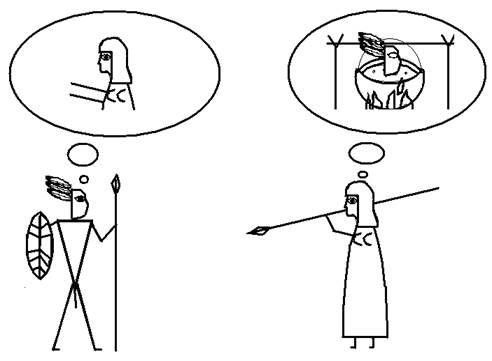 Рис. 46. Формирование феминизмом неадекватного восприятия противоположного пола и неадекватных отношений. Мужчина и женщина воспринимают друг друга как опасность, а не как сексуальный объект и потенциального партнера.
