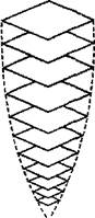 Рис. 4.25. Продолжительное правое латеральное пограничное движение с протрузией, записанное в горизонтальной плоскости. Латеральные движения можно получить на разных уровнях открытия нижней челюсти. Краевые движения, получаемые с возрастающей степени открытия, приведут к все более мелким ромбовидным фигурам до тех пор, пока (в максимально открытом положении) не будет никакого латерального движения (рис.4.26).