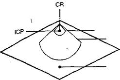 Как и в сагитальной плоскости, функциональные движения в горизонтальной плоскости наиболее часто происходят около ПММО. Во время жевания объем движения челюсти начинается на некотором расстоянии от ПММО. Однако, когда пища размельчается на более мелкие куски, действие челюсти передвигается ближе и ближе в ПММО. Точное положение нижней челюсти во время жевания продиктовано существующей окклюзионной конфигурацией (рис. 4.27).