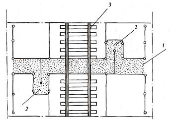 Рис. 3.1. Схема лабіринту на перехресті пішохідної доріжки і шляху: 1 – пішохідна доріжка; 2 – лабіринт; 3 – залізнична колія