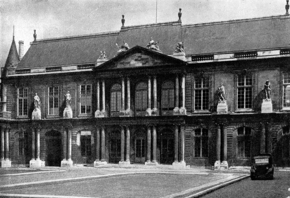 Претерпевает изменения и архитектурный стиль эпохи. Характерное для классицизма прошлого века большое единство образных решений наружного облика и внутреннего пространства к началу 18 в. распадается. Этот процесс распада сопровождается разъединением строительной практики и теоретических учений, различием принципов оформления интерьера и фасада. Ведущие архитекторы в своих теоретических трудах по-прежнему поклоняются античности и правилам трех ордеров, однако в непосредственной архитектурной практике они отходят от строгих требований логической ясности и рационализма, подчиненности частного целому, четкой конструктивности. Творчество Робера де Котта (1656—1735), преемника Жюля Ардуэна-Мансара на посту королевского архитектора (он завершил строительство прекрасной по своей строгой, благородной архитектуре капеллы Версальского дворца), являет убедительный пример этого. В построенных им в 1710-х гг. парижских особняках (отель де Тулуз и отель д'Эстре) замечается облегчение архитектурных форм, свободное развитие декора. Новый стиль, получивший название рококо или рокайль, нельзя рассматривать только с одной стороны, видя в нем лишь реакционное и бесперспективное порождение упадочного класса. В этом стиле нашли свое отражение не только гедонистические устремления аристократии. В рококо своеобразно преломились и некоторые прогрессивные тенденции эпохи; отсюда — требования более свободной и соответствующей действительной жизни планировки, более естественного и живого развития, внутреннего пространства. Динамика и легкость архитектурных масс и декора противостояли тяжеловесной помпезности оформления интерьеров в эпоху высшего могущества французского абсолютизма. В начале 18 в. основное строительство еще ведется аристократией, но его характер значительно меняется. Место усадебных замков занимают городские особняки, так называемые отели. Ослабление абсолютизма сказалось и в том, что дворянство покидает Версаль и оседает в столице. В зеленых предместьях Парижа — Сен Жермен и Сент Опоре — один за другим на протяжении первой половины века строятся роскошные особняки-отели с обширными садами и службами (рис. на стр. 258). В отличие от дворцовых сооружений предшествующего века, преследующих цели импозантной -представительности и торжественного величия, в создаваемых теперь особняках большое внимание уделено действительному удобству жизни. Архитекторы отказываются от цепи больших залов, вытягивающихся торжественной анфиладой, в пользу комнат меньшего размера, располагающихся более непринужденно в соответствии с потребностями частного быта и общественного представительства хозяев. Множество высоких окон хорошо освещает внутренние помещения. По своему расположению в городе отели первой половины 18 в. представляли в значительной мере еще переходное явление от загородного поместья к городскому дому. Это замкнутый архитектурный комплекс, своеобразная усадьба внутри городского квартала, связанная с улицей только парадными воротами. Сам дом стоит в глубине участка, выходя фасадом на обширный двор, обстроенный низкими служебными помещениями. Противоположный фасад обращен к саду, сохраняющему регулярную планировку. В отелях первой половины 18 в. наиболее ярко проявилось характерное противоречие французского зо