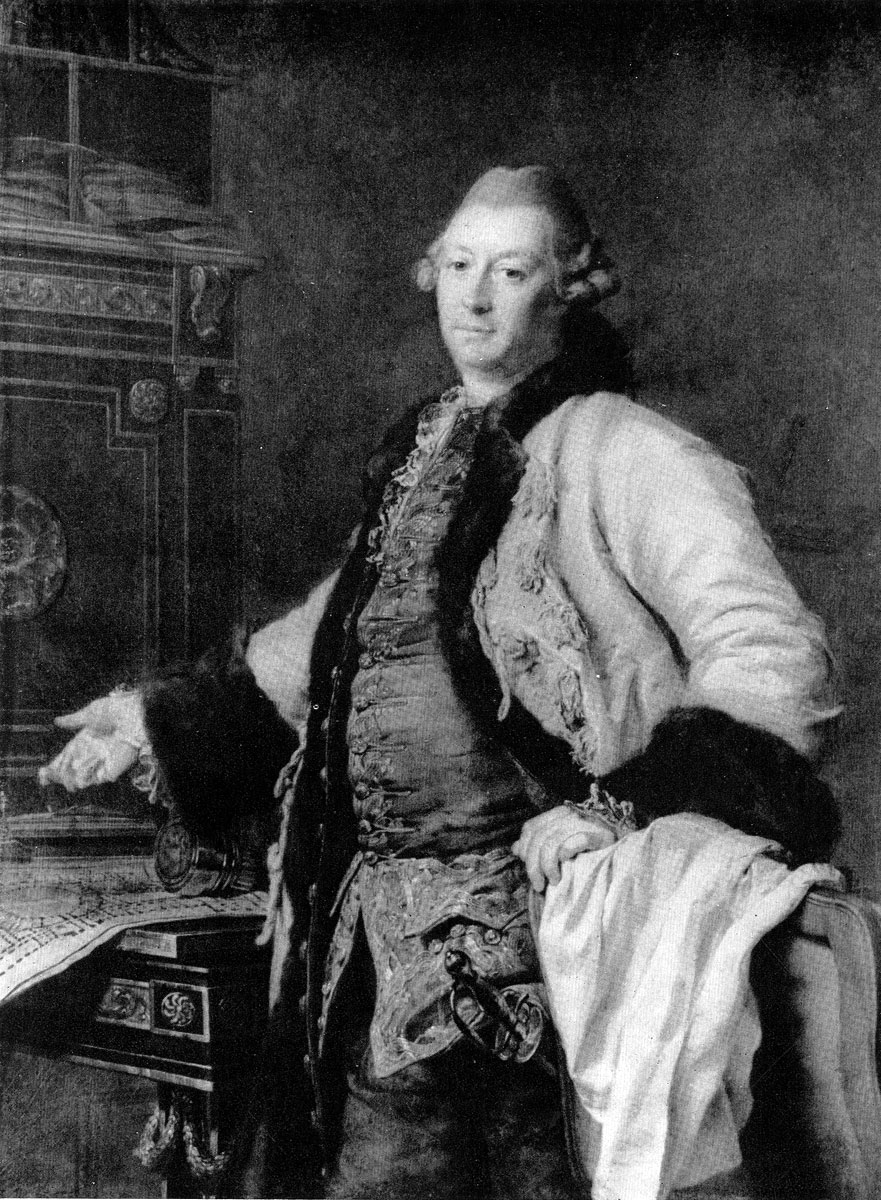 В творчестве Левицкого большое место занимает парадный портрет. Здесь присущая его живописи декоративность открывается во всем своем блеске. К числу лучших ранних произведений Левицкого в этом жанре следует причислить портрет директора Академии художеств архитектора А. Ф. Кокоринова (1769—1770; Русский музей). Уже в этом портрете художник обнаруживает совершенное знание традиционного образного строя и традиционных композиционных приемов современного ему западноевропейского репрезентативного портрета с его пониманием значительности образа, величественностью позы и жеста, богатым аксессуарным окружением. Рисунок в портрете безукоризнен. Во всем чувствуется присущая Левицкому любовь к передаче материальной, осязаемой поверхности предметов, к красоте натуры. С большим блеском написан лиловый шелковый камзол архитектора с густым золотым шитьем, пушистая соболья опушка украшенного серебряным шнуром кафтана. Здесь отчетливо ощущается близость Левицкого тому чувственному любованию бытием, которое в большей мере было присуще и поэзии Державина. В парадных портретах зрелого периода Левицкий освобождается от театральной риторики, они проникнуты духом жизнерадостности, праздничного ощущения жизни, ярким и здоровым оптимизмом. Типичен для зрелого Левицкого огромный портрет П. А. Демидова в рост (1773; Третьяковская галлерея) (илл. 328). Чрезвычайно импозантный, он выдержан в золотисто-зеленоватой гамме с оттенками оливкового, в которую введен звучный теплый красный цвет. Великолепно написанный шелк шуршит и топорщится, отливая на сгибах складок, поблескивает бронза, эффектно драпируются тяжелые ткани. Однако уже самый замысел портрета, построенный на контрастах, почти граничащих с иронией, несет в себе нечто необычное. Демидов стоит в спокойной, немного демонстративной позе, столь обычной для портретов такого рода. В то же время его лицо — лицо пожилого, капризного человека с печально опущенными веками, со старчески запавшим ртом, чуть кривящимся в странной кислой полуулыбке. На нем халат, колпак и домашние туфли. Традиционный демонстративный жест его правой руки обращен не к изображенному на фоне портрета Воспитательному дому, на который он пожертвовал большую сумму денег, а к цветочным горшкам с розами и примулами. Демидов опирается на садовую лейку, перед ним на столе — цветочные луковицы, какой-то труд по ботанике. Художник выходит за границы парадного изображения, где, согласно теории того времени, портретируемый должен говорить о себе: «Я есть оный царь, окруженный величеством». Характеристика модели индивидуализированная Художник, по-видимому, исходит из действительных жизненных особенностей изображаемого человека. Портрет представляется верным изображением модели — известного оригинала 18 в., горнозаводчика, богатейшего и эксцентричного человека, поклонника французских просветителей и щедрого благотворителя.