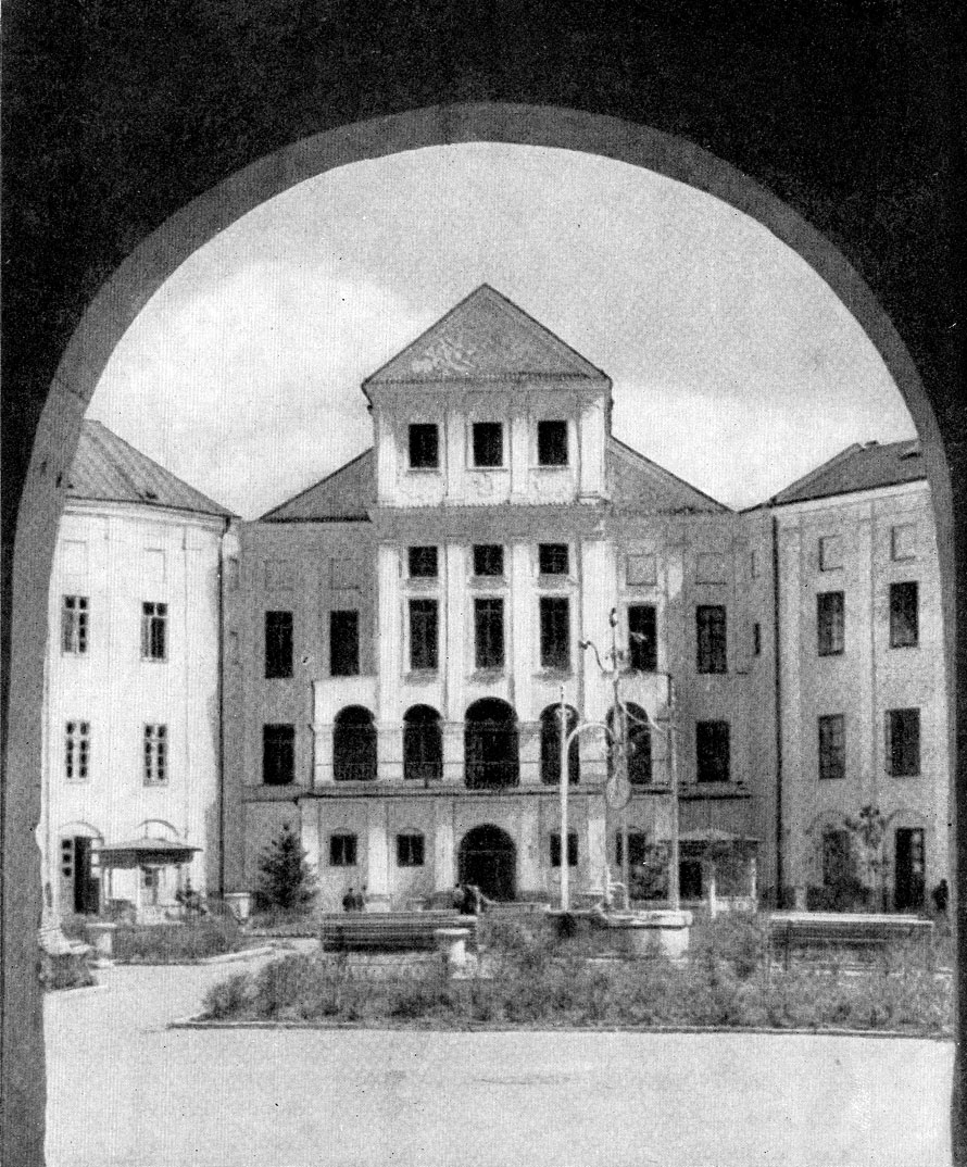 В архитектуре в течение 17 в. осуществлялась активная застройка городов — Могилева, Полоцка, Витебска. Создавались многочисленные городские сооружения, жилые строения, ратуши, укрепления, представляющие собой образцы белорусской гражданской деревянной архитектуры. Некоторые из них носили переходный по отношению к предшествующему этапу характер. Черты, близкие древнерусскому зодчеству, долго проявлялись в культовой, особенно деревянной архитектуре. Так, Ильинская церковь в Витебске (17—18 вв.) по своей архитектурной композиции девяти глав, ритмически нарастающих к центральной, напоминает храм Василия Блаженного в Москве. Близка к традициям деревянного зодчества и каменная церковь Петропавловского монастыря в Минске (1612). Наряду с этим происходит и развитие костельной архитектуры. Типичным примером является иезуитский костел в Гродно (1667), построенный в стиле барокко. В 18 в. в Белоруссии продолжается распространение стиля барокко. Одним из крупнейших сооружений является Спасо-Преображенский собор в Могилеве, созданный Гляубицем (Гляубицасом—архитектором, строившим в Вильнюсе)—пример кре-стовокупольного храма. В нем также заметна связь с русским и украинским барокко, характером своего пятиглавия он напоминает собор Смольного монастыря Растрелли. Замечательным памятником белорусского зодчества является перестроенный около середины 18 в. Софийский собор в Полоцке, сооруженный еще в 11 в. и неоднократно перестраивавшийся и менявший свой облик. В 18 в. он был превращен в барочный двухбашенный базиликальный храм, сохранивший, однако, в своих мощных абсидах связь с древнерусским зодчеством. Монументальное здание собора, стоящее на высоком холме у впадения реки Полоты в Западную Двину, замечательно связано с природным окружением.