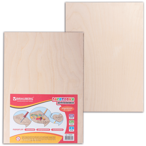 Код 150650 Цена – 233 руб. Деревянная заготовка BRAUBERG дает простор для творчества, позволяя нанести на поверхность любое изображение, впоследствии выжечь его или раскрасить красками. В дальнейшем изделию можно придать форму, обработав края лобзиком.