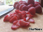 | Начнем с пюре. Для этого клубнику порезать, но не очень мелко.