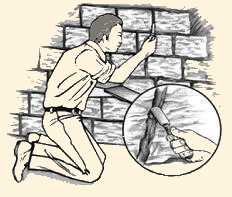 Камни большинства коллекций кладутся с расшивкой, то есть на определённом удалении друг от друга. Образовавшийся шов заполняют расшивочной смесью, которая обычно состоит из той же самой цементной клеевой мастики. Иногда её подкрашивают в нужный цвет для усиления выразительности каменной кладки. Ширина шва между плитками облицовочного камня зависит от его вида и колеблется от нуля (все виды сланцев) до нескольких сантиметров (бутовый камень или валун). У кирпича стандартная расшивка – 12мм. Если камень предназначен для бесшовной укладки, необходимо плотно пристыковывать плитки друг к другу. Если плитка была уложена правильно, то Если выдавленной мастики не хватает для оформления руста или камень укладывался на другой тип клея, то потребуется заполнение шва. Для этого используйте специальный мешочек с расшивочным раствором внутри, из которого удобно выдавливать смесь прямо в шовное пространство. После окончания работы (не раньше, чем мастика подсохнет и станет рассыпчатой) необходимо будет почистить поверхность камня от случайно попавшего на неё раствора. Это можно сделать с помощью сухой щёточки. Не используйте влажную или металлическую щётку. Рекомендуемая затирка для швов: