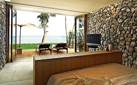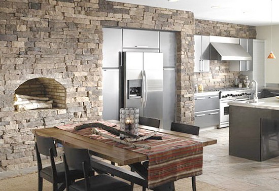 Оформляя интерьер частного дома или особняка, можно позволить себе гораздо больший размах в применении камня. Помещения большой площади с отделкой стен камнем будут визуально казаться еще более светлыми и просторными. Если у вас есть винный погреб в доме, то самым лучшим материалом для его оформления будет камень в сочетании с деревом. Каменные стены и деревянный пол винного погребка создадут старинную атмосферу, которая и должна быть присущей такого рода помещениям. В большой гостиной можно выложить каменный камин, а если у вас кухня и гостиная совмещены, то из камня можно сделатьбарную стойку, разделяющую эти два помещения на зоны. Сочетание в декорировании интерьеров таких материалов, как камень и дерево, всегда смотрится солидно и изысканно. Не бойтесь экспериментировать и создавать настоящий уют в вашем доме.