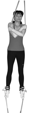 И. п.: лежа на спине, ноги разведены, стопы на ширине плеч, руками держимся за резиновые бинты. К ногам прикреплены петли, которые позволяют им оставаться без движения.