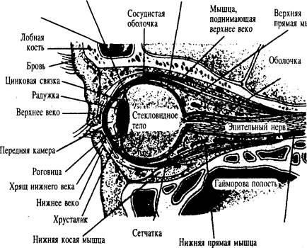 .Глаз — орган многослойный, очень-очень многослойный. Посмотрите на рисунок. Он состоит из глазного яблока и вспомогательных частей— век, слезного аппарата и мышц, двигающих глазное яблоко, и, конечно, из импортных очков, похожих на два унитаза. Приглядитесь хорошенько! При помощи зрительного нерва глазное яблоко соединено с мозгом, но этот последний орган есть не у всех? Почему называется роговицей? Потому что у некоторых дам она обладает болезнетворным свойством наставлять рога на макушку мужу. Она, будучи бессовестно прозрачной, является также светопреломляющей средой. Под белковой находится сосудистая оболочка, в которой расположены кровеносные сосуды, питающие все ткани глаза, в том числе и сетчатку. Было бы очень хорошо, если бы у очкариков эта оболочка еще и подпитывала бы мозг, при наличии последнего! Сетчатка имеет очень сложное строение и состоит главным образом из нервных клеток. По своему происхождению сетчатка является выдвинутой далеко вперед частью мозга. От ее клеток берут свое начало волокна зрительного нерва. Сетчатка — именно та часть глаза, с помощью которой мы фактически видим, но иногда не хотим понимать то, что мы лицезрим. Она плотно покрывает заднюю часть глазного яблока и функционально похожа на чувствительный элемент видеокамеры. После того как свет достигает сетчатки, она передает сигнал по зрительному нерву в мозг. Мозг обрабатывает полученную информацию и часто недоуменно повторяет: “Ну и ни хрена себе?!” Передний отдел сосудистой оболочки образует радужку, радость моя! Она содержит мышцы, которые суживают и расширяют зрачок. Радужка играет роль диафрагмы, регулирующей силу светового потока и резкость изображения. Совокупность мышц радужки представляет аккомодационный аппарат глаза. Аккомодация — это способность глаз переходить от состояния мутных шаров пьяной рыбы до состояния влюбленного марсианина, т. е. глаз на стебельках. Мышцы радужки действуют рефлекторно независимо от нашей воли! И очень часто она, предательница, закладывает нас с потрохами! Кроме того, она содержит пигментные клетки, определяющие, как мы говорим, цвет глаз. В ее центре находится зрачок. Сзади к радужке прилегает прозрачный хрусталик, по форме напоминающий зерно чечевицы. Хрусталик — главная часть светопреломляющего аппарата глаза. Благодаря своим эластичным свойствам он может становиться то более, то менее выпуклым в зависимости от того, рассматривается предмет с близкого или с далекого расстояния. То есть вытаращиваться до размеров полголовы и сужаться до размера откормленной блохи! Это так называемая аккомодация глаза. У пожилых людей способность к аккомодации уменьшается — развивается возрастная дальнозоркость. Они очень хорошо видят все, что находится далеко-далеко, даже за туманом, но то, что под носом, для них является препятствием, непроходимой чащей! Большая часть глазного яблока расположена в специальном углублении, которое называется глазницей или орбитой. Не зря есть такое выражение “глаза вылезли из орбит!” Передняя его поверхность покрыта прозрачной слизистой оболочкой — конъюнктивой. Она защищает глазное яблоко от инфекции, а также от случайной пыли или грязи. Глаза воспринимают не только свет и цвет. Они дают нам представление о форме предметов, их пространственном расположении. Это с