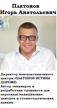 СДЕЛАЙТЕ ТАК, ЧТОБЫ К ВАМ ПРИШЛИ! *Новые методы работы с будущим. *Выберите нас! А почему Вас? «Взрослизация» сотрудников клиники, как мощное конкурентное преимущество. *Потенциальный клиент – ещё не пришедший пациент. Типы клиентов и принципы работы с ними. *Алгоритм работы администратора стоматологической клиники на этапах волшебного превращения потенциального клиента в пришедшего пациента. *Цели, задачи и алгоритмы работы. Тренинг «Телефонный звонок клиента». Тренинг построен в форме ролевых игр, в которых принимают участие все участники семинара. СДЕЛАЙТЕ ТАК, ЧТОБЫ У ВАС ОСТАЛИСЬ! *Должностные инструкции и качественные показатели. Почему они не могут быть одинаковыми в разных клиниках. Конкурентные преимущества в работе врача, администратора и ассистента, как показатели стабильности и безопасности. *Консультация пациента, впервые обратившегося в Вашу клинику. Тренинг «Клиент в стоматологической клинике» *Что важно знать врачу и ассистенту для эффективного взаимодействия с пациентом. Ответственность. Алгоритм действий врача и ассистента в процессе консультации. *Информирование о гарантиях и стоимости лечения. Варианты информирования пациента. Врач или врач – продавец СДЕЛАЙТЕ ТАК, ЧТОБЫ К ВАМ ВОЗВРАЩАЛИСЬ! *Конкурентные преимущества, как элемент корпоративной стратегии клиники и врача. *Сравнительная аргументация и выявление собственных конкурентных преимуществ. Создание уникального предложения для клиента. Практическое занятие. *Правильные ответы на вопросы о стоматологических клиниках – конкурентах. Техники отстройки от конкурентов. Практическое занятие. *Техники работы с ключевыми сопротивлениями (стоимость лечения, мне только один зуб полечить, остальное не нужно, а почему у Вас дороже, чем…, мне врачи все зубы испортили). Практическое занятие.