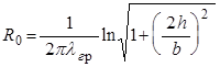 Здесь t 0 – естественная температура грунта на глубине оси трубы h. Температурное поле в грунте вокруг двухтрубного бесканального теплопровода определяется по формуле