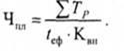 Розраховую чисельність основних робітників,потрібних на річну програму. При визначенні планової чисельності основних робітників (Чпл,) за трудомісткістю виробничої програми необхідно враховувати плановий обсяг робіт у нормо-годинах (∑Тр)(Кi * mi)– планова верстатомісткість одиниці і- того виду виробу; mi – кількість виробів і –того виду), ефективний фонд робочого часу одного середньооблікового робітника в годинах (tф) та плановий коефіцієнт виконання норм (Квн):