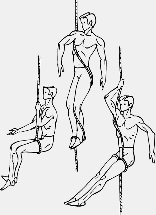 Рис 25 - «восьмеркой» - поднять ноги вперед и зажать между ними канат; скрестив ноги, освободить одну руку; взять канат снизу, перекинуть его через бедро и пропустить между ногами, взять канат снизу другой рукой и перекинуть его через бедро другой ноги; держаться за канат одной рукой (рис. 25,в). Date: 2015-08-06; view: 2650; Нарушение авторских прав |