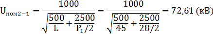 где L – длина ВЛ, км; P – передаваемая активная мощность на одну цепь ВЛ, МВт.