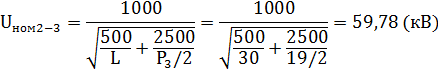 Ввиду того, что все нагрузки имеют в своём составе потребителей 1 категории, питание каждой из подстанций в обоих вариантах предусматривается от двух независимых источников. Номинальное напряжение ВЛ (кВ) может быть определено по эмпирической формуле, предложенной Г.А.Илларионовым: