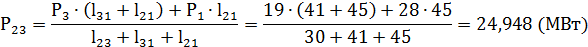Рис 1.3 Кольцевая схема как линия с двухсторонним питанием Номинальное напряжение между ПС А-ПС 2 такое же, как и в радиальной схеме, т.е. 220 кВ. Рассчитана мощность на участке 12 (l12) и 13 (l13):