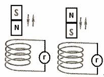 Рис. 4 Вывод: величина тока зависит от величины магнитной индукции. Опыт: внесение (вынесение) магнита сначала северным полюсом, затем южным полюсом. (рис. 5)