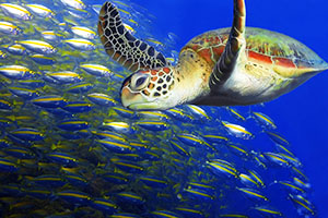 Этот дайв-сайт, расположен у острова №8 (Ко Симилан) и идеально подходит для погружений на закате или ночью. Точка входа находится рядом с подводными вершинами у северной части острова. Во время ночных погружений не стоит проплывать сквозь подводные тоннели и беспокоить рыб и животных, прикасаясь к ним либо слишком долго направляя в их сторону фонарь. Течение фактически отсутствует, так как дайв-сайт находится в заливе. Морская флора и фауна После наступления темноты, на Дональд Дак Бэй оживляется крохотная живность, такая как коралловые крабы, креветки, кальмары, голожаберные моллюски и большие омары, которые прячутся в уступах. Коралловые рыбки спят вдоль коралловых рифов, а рыбы-попугаи в слизистых коконах. Здесь также можно увидеть групперов, охотящихся акул-нянек и множество морских черепах, которые иногда просят еду у аквалангистов. Кормить их не стоит, так как в долгосрочной перспективе это может изменить их естественное поведение и способность выживания. Дайв - сайт: Turtle Rock (также известный как Hin Tao)
