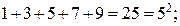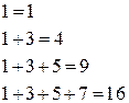 Мы получаем квадраты натуральных чисел, причем каждая сумма равна количеству слагаемых, возведенному в квадрат. Отсюда возникает предположение: «Для любого n сумма n последовательных нечетных чисел (начиная с 1) равна n 2», то есть