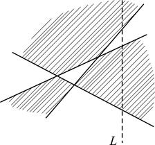Рассмотрим наш чертеж без одной прямой (обозначим её L). Так как на плоскости остается k прямых, по индукционному предположению можно закрасить получившиеся области с выполнением нужного условия. Сделаем это (см. рис. 5б). Теперь рассмотрим чертеж вместе с прямой L. Для областей, находящихся по одну и ту же сторону от L, требуемое условие выполнено. Оно не будет выполнено только для тех областей, для которых общая сторона лежит на прямой L. Поменяем цвета на противоположные в тех областях, которые лежат по одну фиксированную сторону от прямой L (см. рис. 6).