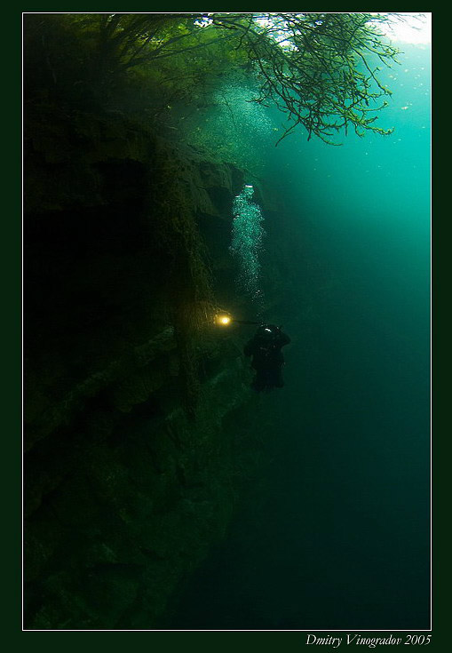 Вода в озере круглый год +9 градусов, видимость под водой практически не зависит от погоды и достигает 20-40 метров, причем как на поверхности, так и на глубине 35-40 метров! Шикарные подводные скалы, уходящие в бездну. Потрясающий бирюзовый цвет воды.