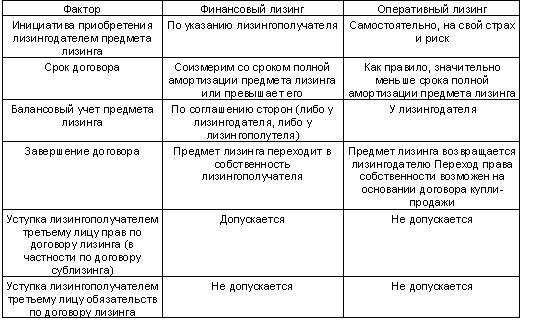 Таблица 1 – Сравнение финансового лизинга с оперативным