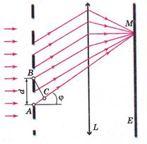 Ø Просвітлення оптики Ø Контроль якості шліфування поверхні Ø В інтерферометрах – приладах для вимірювання довжини світлової хвилі 23. Дифракція – явище огинання хвилями перешкод, розміри яких не перевищують довжини хвилі. 24. Від яких перешкод можна спостерігати дифракцію: щілина, нитка, вістря голки, волосинка. Наслідком дифракції світла є інтерференція променів, що огинають перешкоду. В залежності від відстані від перешкоди до екрану навпроти перешкоди на екрані буде спостерігатись або темна або світла смуга. 25. Принцип Гюйгенса: кожна точка простору, якої досягає фронт світлової хвилі, стає джерелом вторинних світлових хвиль. Принцип Гюйгенса – Френеля; хвильова поверхня в будь-який момент часу є не просто обвідною вторинних хвиль, а результатом їх інтерференції. 26. Дифракційна гратка – це тонка пластинка, на яку нанесені паралельні штрихи з проміжками (щілинами) між ними. 27. Період (стала) дифракційної гратки Період дифракційної гратки можна визначити, знаючи кількість