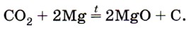 Углекислый газ СO2 как типичный кислотный оксид взаимодействует с щелочами (например, вызывает помутнение известковой воды), с основными оксидами и водой. Он не горит и не поддерживает горения и потому применяется для тушения пожаров. Однако магний продолжает гореть в углекислом газе с образованием оксида и выделением углерода в виде сажи:
