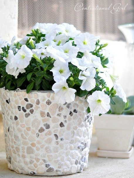 Шаг 4 Когда укладка камушков по всей поверхности ведра закончена, оставьте его до полного высыхания.