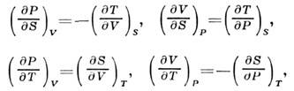 Частота - количество оборотов биона в единицу времени. Скорость света - скорость передачи вращений от одного биона к другому. Фаза - расположение одного из полюсов биона относительно линии распространения электромагнитной волны. МАКСВЕЛЛА СООТНОШЕНИЯ - соотношения между производными термодинамич. ф-ций: Метод термодинамических потенциалов помогает преобразовывать выражения, в которые входят основные термодинамические переменные и тем самым выражать такие «труднонаблюдаемые» величины, как количество теплоты, энтропию, внутреннюю энергию через измеряемые величины — температуру, давление и объём и их производные.