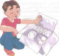 Показать состояние грязной посуды, которая была у бабушки Федоры в сказке К. Чуковского. Чудесные превращения. Изобразить кипящий чайник; кастрюлю, наполненную водой; ведро с крышкой; разбившуюся чашку; чайник с заваренным чаем.
