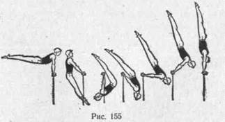 2. Оборот назад в вис, в стойку на руках (рис. 155) начинается