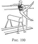 Основные упражнения на коне по наиболее существенным признакам в технике разделены на две структурные группы: м а я т -никообразные и круговые движения ногами (рис. 188). В каждой из этих групп упражнения объединяет общность способа взаимодействия усилий гимнаста и наиболее значительных внешних сил (прежде всего моментов сил тяжести рабочих звеньев). Основную массу упражнений первой группы состав-