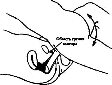 Рис. 23. Вращение крестцом. Подсказка Вращение крестцом Первое время вращательные движения, вероятно, будут начинаться с бедер или промежности, поскольку, пока вы не танцуете латиноамериканские или африканские танцы, вы, скорее всего, не умеете делать вращательных движений крестцом. Со временем, вы сможете делать вращательные движения по спирали, «ввинчиваться» искусными движениями вашего крестца. Чтобы расслабить;крестец, положите одну руку на лобок, а другую руку на крестец, и попробуйте сделать вращательные движения по спирали влево и вправо. Затем попытайтесь поднять пенис, будто вы толкаете копчик (основание крестца) вперед (слегка выпрямляя спину), а затем попытайтесь наклонить ваш пенис вниз, будто вы толкаете копчик назад (слегка прогибая позвоночник). Как только вы сможете расслабить крестец, вы сможете действительно совершать им вращательные движения. По теории Дао, пенис (толкающий прямо) выходит быстро, но если он совершает вращательные (круговые) движения, то остается внутри более продолжительное время. Элвис Пресли использовал эти тазовые (в действительности, крестцовые) круговые движения в определенный период жизни, чтобы достигнуть большего эффекта и большей популярности. Вы также столкнетесь с тем же восторженным одобрением в спальне, когда в совершенстве овладеете этой техникой. В этом случае есть время и место для старинных восторженных толкательных движений, особенно если ваша партнерша любит глубокие проникновения пениса. Мужчина, испытавший многократный оргазм, рассказывал: «Женщины обычно любят сильные толкательные движения после того, как они расслабятся. Если начать делать такие движения слишком рано, они могут быть болезненными. Ночью я делаю такие движения сильнее, потому их страстность как раз для этого времени суток. Если я чувствую, что устал, — мне нужно отдышаться, а иногда, если необходимо, я вынимаю пенис и использую язык и пальцы». Одним из преимуществ пользования презервативов — мы обсуждали это в разделе под названием «Когда начинать: несколько слов о безопасном сексе», а позже — ив этой главе — является то, что уменьшая чувствительность пениса, вы можете продлить занятия любовью, особенно если ваша партнерша хочет, чтобы вы делали глубокие и сильные толкательные движения. Но вы должны быть уверены, что ваш пах остается в соприкосновении с ее телом и вы контролируете скорость возбуждающих движений. Когда вы приобретете больший опыт и больший контроль, вам нужно будет реже вынимать пенис Мужчина, испытывавший оргазм много раз подряд, рассказывал, что он делает, когда приближается к кульминационному моменту: «Когда я занимаюсь любовью, я стараюсь прислушиваться к себе, к своему телу, пытаюсь передать партнерше свои ощущения и стараюсь дать понять ей, на какой стадии я нахожусь. Если я близок к завершению, я останавливаюсь и начинаю глубоко дышать, и это позволяет мне расслабить тело». Вам всегда лучше начинать с медленных толкательных или вращательных движений. (Дао-практика против того, чтобы спешить, иметь для этого мало времени и чувствовать самомнение, о котором пишут в популярных изданиях о мужской сексуальности. «Что, трах, спасибо, м-м-м».) Как и во всех физических и духовных практиках, занятия любовью требуют порядка и нововведений. Вы должны интересоваться как общей техникой