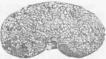 Симптомы. По клиническим признакам выделяют три формы гломерулонефрита: гематурическую, нефротическую и смешанную. Для гематурической формы заболевания характерна гипертензия, гематурия и отечный синдром. Нефротическая форма сопровождается отеками, протеинурией и цилиндрурией. Смешанная форма (протеино-гематурическая) характеризуется стойкой гипертензией, отечным синдромом, макрогематурией, протеинурией. Выделяют легкое и тяжелое течение болезни. Легкая форма нефрита протекает почти бессимптомно и распознается только при исследованиях мочи. Обычно заболевание начинается угнетением животного, слабостью, снижением или отсутствием аппетита, повышением жажды. Температура тела в верхних пределах нормы или незначительно повышена, пульс учащен, артериальное давление высокое (17,0/6,0 гПа). При вибрационной перкуссии в области почек отмечается болезненность. Подкожная клетчатка в нижней стенке живота рыхлая. Мочеиспускание редкое, в моче незначительная альбуминурия, качественные пробы на сахар, кровяные, желчные пигменты и уробилин положительные. В мочевых осадках обнаруживают эритроциты, лейкоциты, почечный эпителий и гиалиновые цилиндры. Число эритроцитов, количество гемоглобина в крови уменьшено, тогда как число лейкоцитов повышено. При тяжелом течении болезни животные истощены, больше лежат. Температура тела понижена, пульс замедлен, число дыхательных движений уменьшено. В области нижней стенки живота небольшая отечность, тоны сердца прослушиваются плохо, отмечается акцент второго тона на аорте. Имеет место олигурия, переходящая в анурию. Моча мутная, с наличием белка, сахара, желчных пигментов, уробилина, эритроцитов, лейкоцитов и почечного эпителия, гипохромная анемия. В стадии почечной недостаточности доминируют признаки поражения головного мозга. Отмечается выраженная адинамия, апатия, сонливость, малоподвижность. Снижаются слух и зрение. Расстройство чувствительности сопровождается затуханием рефлексов (уха, венчика и глаза). При этом отмечается гипопротеинемия, диспротеинемия, гиперазотемия, гипохлоремия и анемия. Течение. Острый гломерулонефрит через несколько (8~ 10) дней или через Патологоанатомические изменения. Трупы животных часто истощены. Подкожная клетчатка отечная, в серозных полостях часто имеется транссудат. Почки обычно увеличены, полнокровны (рис. 121). Корковый слой расширен, и на нем много рассеянных красных точек и темно-красных пятен. Гистологически устанавливают расширение и наполнение кровью крупных и мелких сосудов, набухание и частичную десквамацию эндотелия сосудов, увеличение в размере большинства клубочков, дистрофию эпителия канальцев. В капсуле Шумлянского-Боумена встречаются эпителиальные клетки, подвергнутые зернистому перерождению. Поверхностные лимфатические узлы (подчелюстные, коленной складки) слегка увеличены, дрябловатые, серо-желтого цвета, рисунок сглажен, окружающая ткань отечна. Слизистые оболочки отечные. Сердце слегка увеличено за счет левой половины. Эпикард дряблый, отечный, имеются точечные кровоизлияния. На эндокарде и клапанах точечные кровоизлияния. Печень слегка увеличена, дрябловатая. Имеет темно-коричневый цвет, суховатая, рисунок выражен слабо. Селезенка сморщена, капсула собрана в складки, под ней множественные точечные кровоизлияния, на р