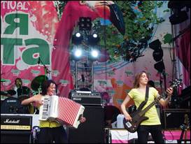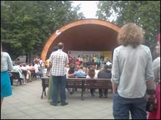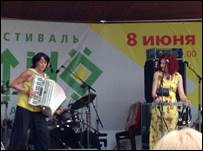Сегодня гуляли, гуляли...и до гуляли до парка им. Баумана, а там этно фестиваль. Сели послушать и обалдели, если честно не ожидали, что услышим группы хорошего уровня. В живую девчонки просто чудо как хороши! Здорово играют! Ну, голос у солистки завораживающий.