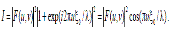 Рис. 8.22. Спектр двух идентичных смещенных относительно друг друга спекл-структур Фурье-образ F(u,v), как и сама функция f (u,v) тоже описывает некую спекл - структуру. Если пренебречь изображением источника в фокусе F, то во всей остальной части фокальной плоскости интенсивность света с точностью до постоянного множителя будет равна.