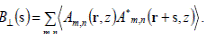 Рассчитаем корреляционную функцию вблизи центра пучка (r = 0), смещение s зададим вдоль оси x и будем считать, что возбуждаются поперечные моды с индексами от m = 1 до m = N⊥. Пусть N⊥ нечетно и коэффициенты hm,n - одинаковы, тогда для пространственной поперечной корреляционной функции получим