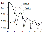 Рис. 6.8. Картина дифракции на круглом отверстии. Параметр С – отношение площади круглого отверстия к площади когерентности
